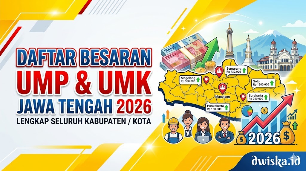 Artikel ini menyajikan data lengkap dan akurat besaran UMP dan UMK 2026 untuk seluruh 29 kabupaten dan 6 kota di Jawa Tengah, lengkap dengan perbandingan tahun sebelumnya, cara perhitungan kenaikan, serta hak-hak pekerja jika perusahaan tidak membayar sesuai ketentuan.